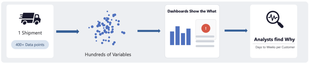 Dashboards surface the “what”, a failing carrier, a problematic route. Isolating the “why” takes days to weeks per customer, with no reusable playbook across different operational profiles.