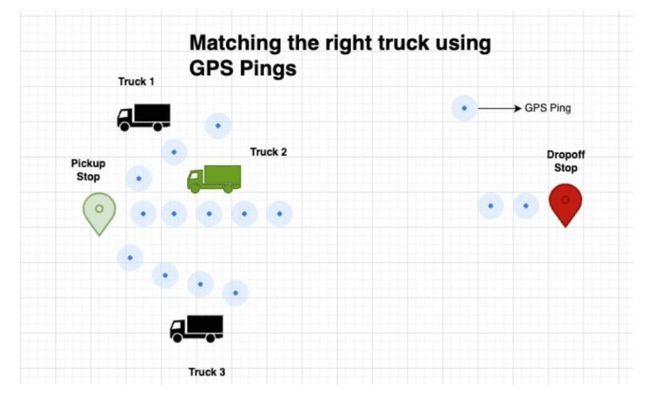 従来のロジックは、例えば「集荷地点から一定距離に入ったか」といった単一条件に寄りがちです。しかしそのような脆い条件は、現場の曖昧性(候補が複数、データ欠損、地図ズレ)に弱い。ITM 2.0では、ルート挙動、タイミング、履歴パターンなど複数のシグナルを統合し、新しい情報(追加のGPS ping)が入るたびに判断を更新します。リアルタイムと履歴の“選別されたシグナル”を機械学習モデルに投入し、トラックと出荷を継続的に、リアルタイムで高精度にマッチングします。