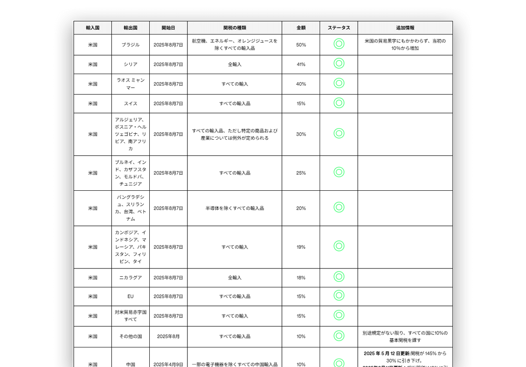 日々更新される関税環境を把握し、次のアクションにつなげるための参考情報としてご活用ください。